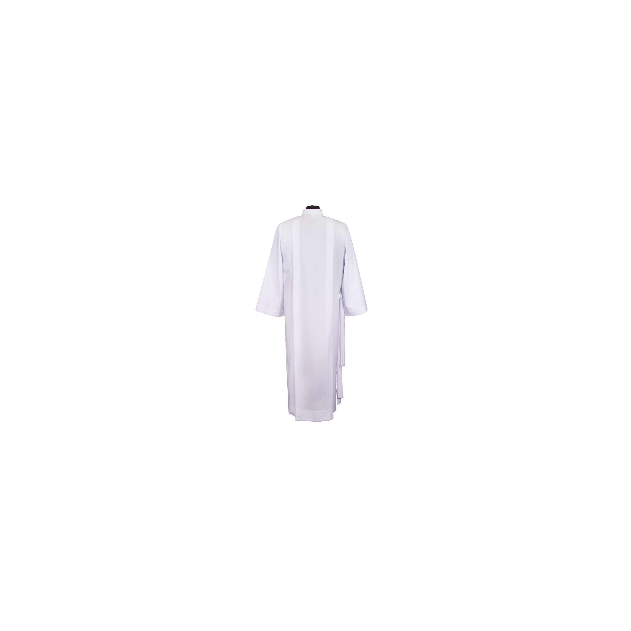 Альба без вышыўкі. Палічка і спінка з вузкімі складкамі. Каўнер стойка, зашпілька "маланка" па пярэдняй палічцы. Ніз рукавы і вырабы шырока адстрочаны.