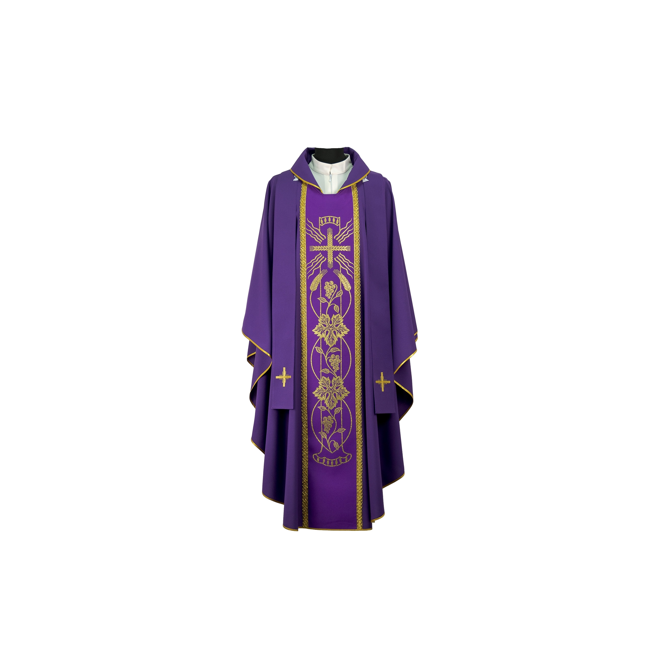 Ўпрыгожаны вышыўкай, якая выконваецца шаўковай або металічнай ніткай.