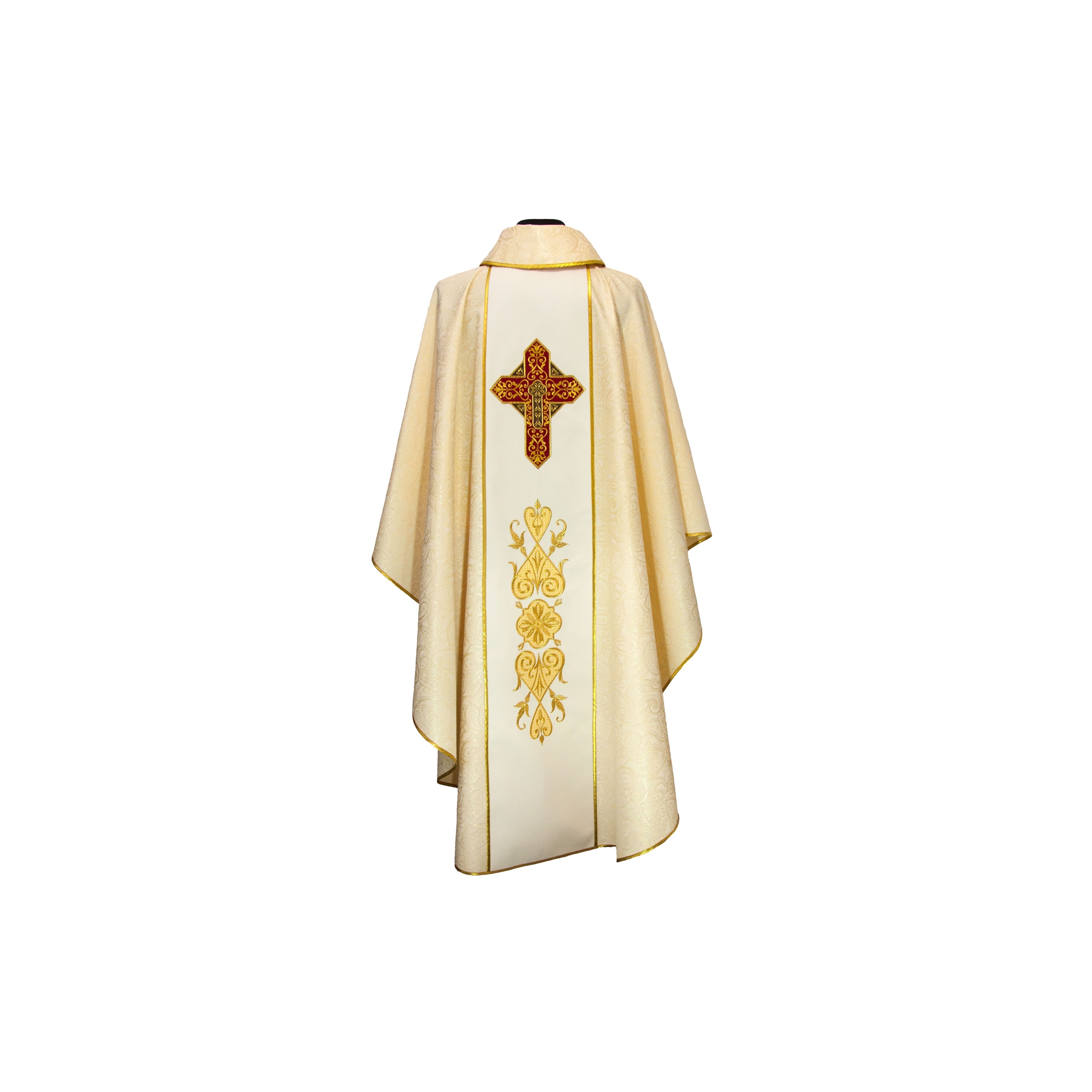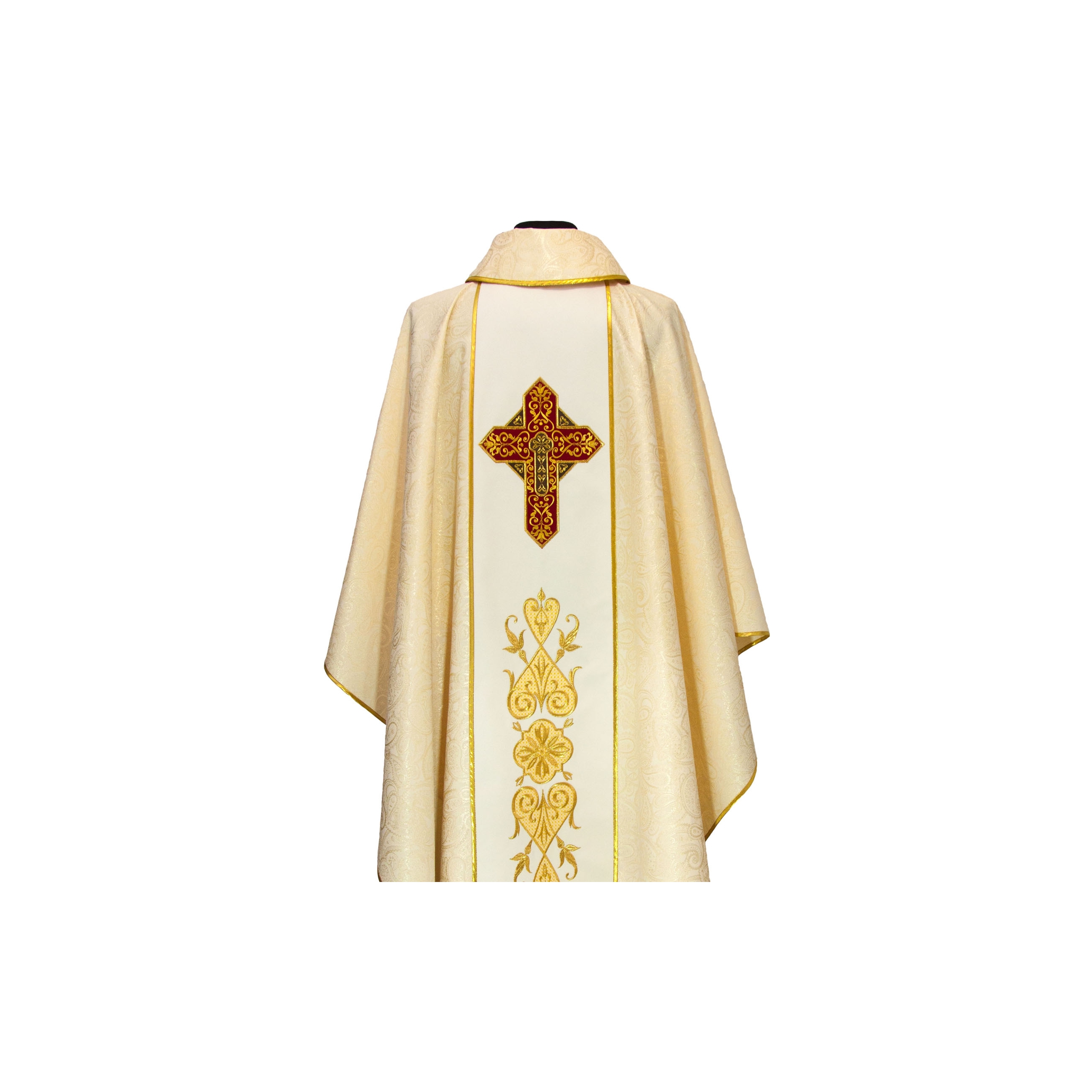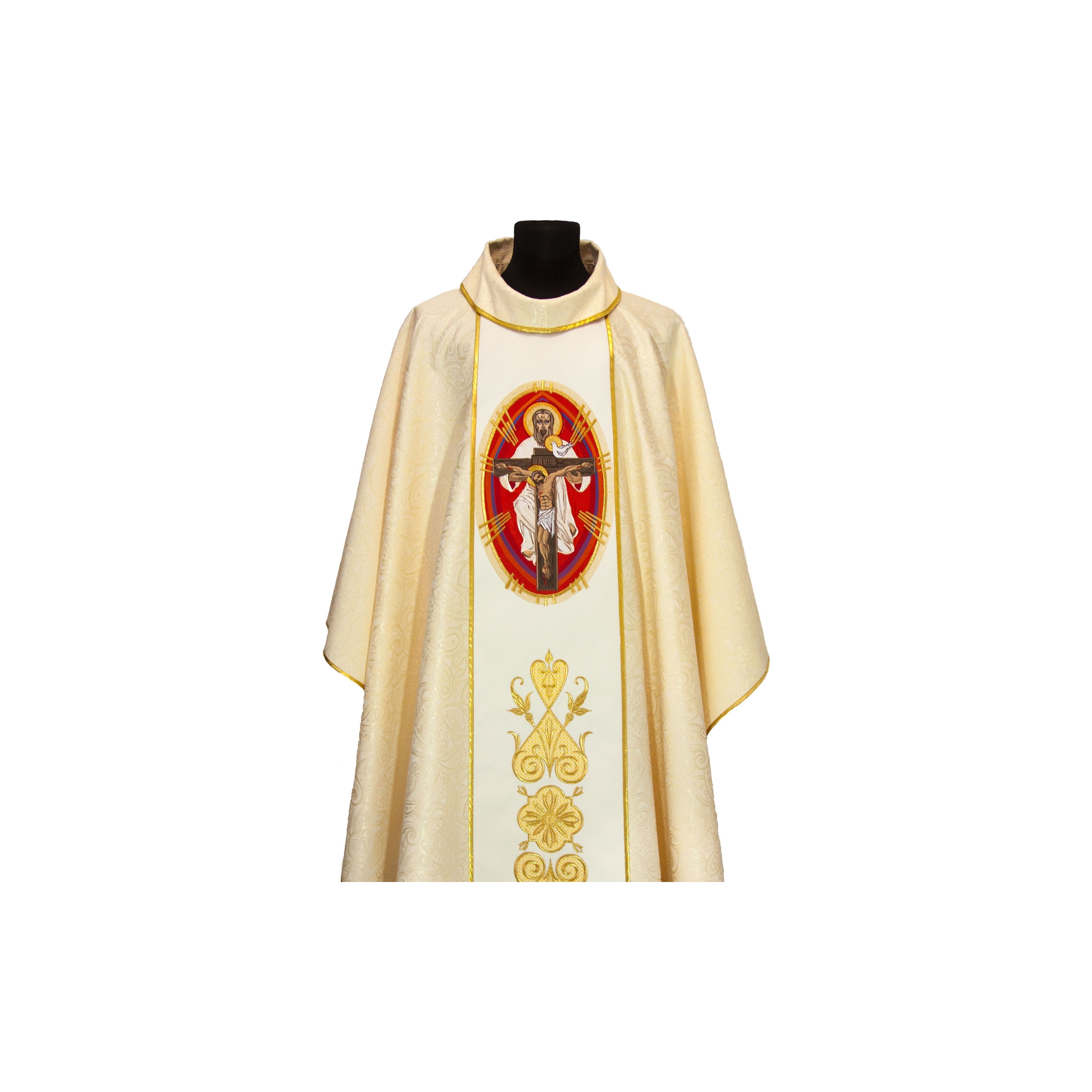 Ўпрыгожаны вышыўкай, якая выконваецца шаўковай або металічнай ніткай.