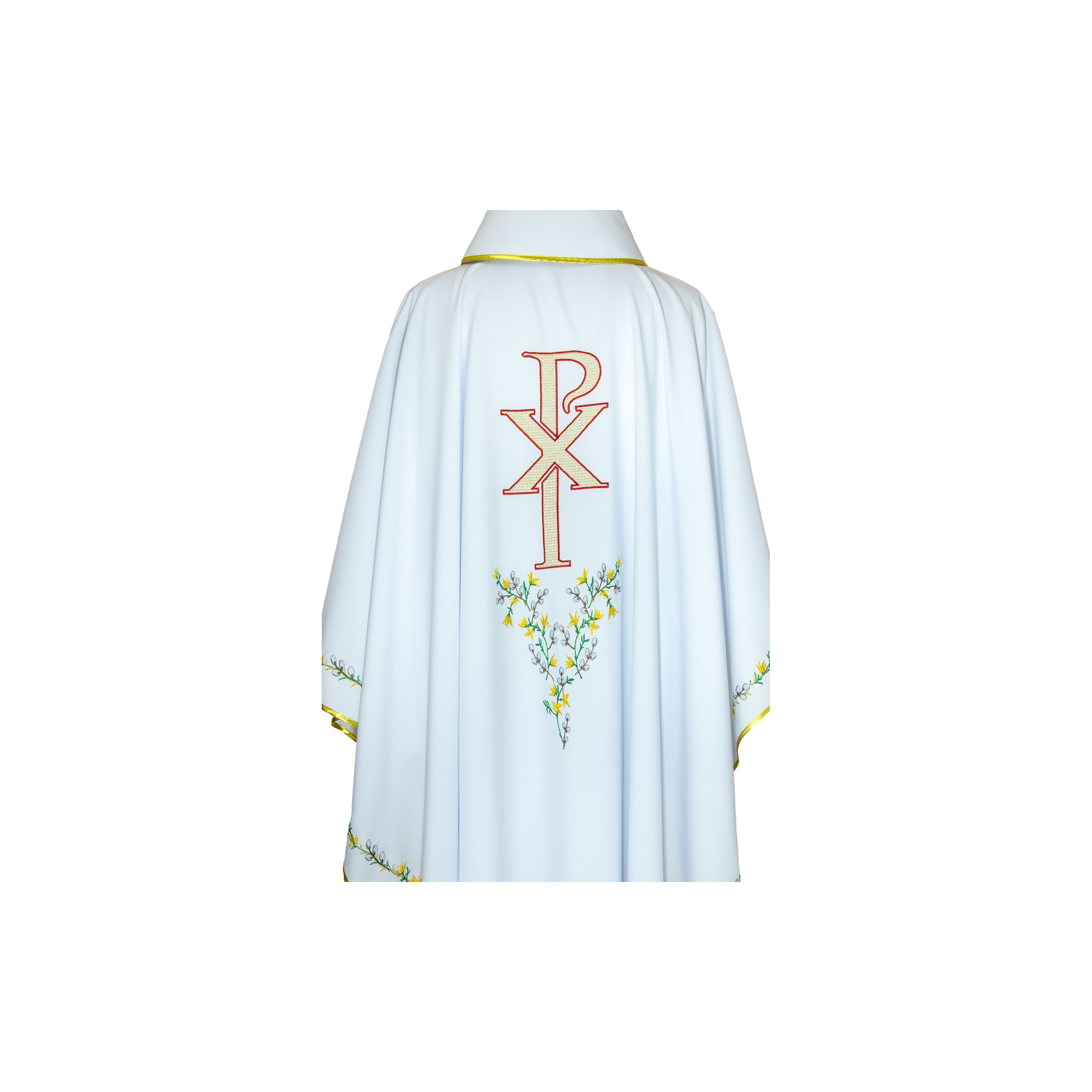 Ўпрыгожаны вышыўкай, якая выконваецца шаўковай або металічнай ніткай.