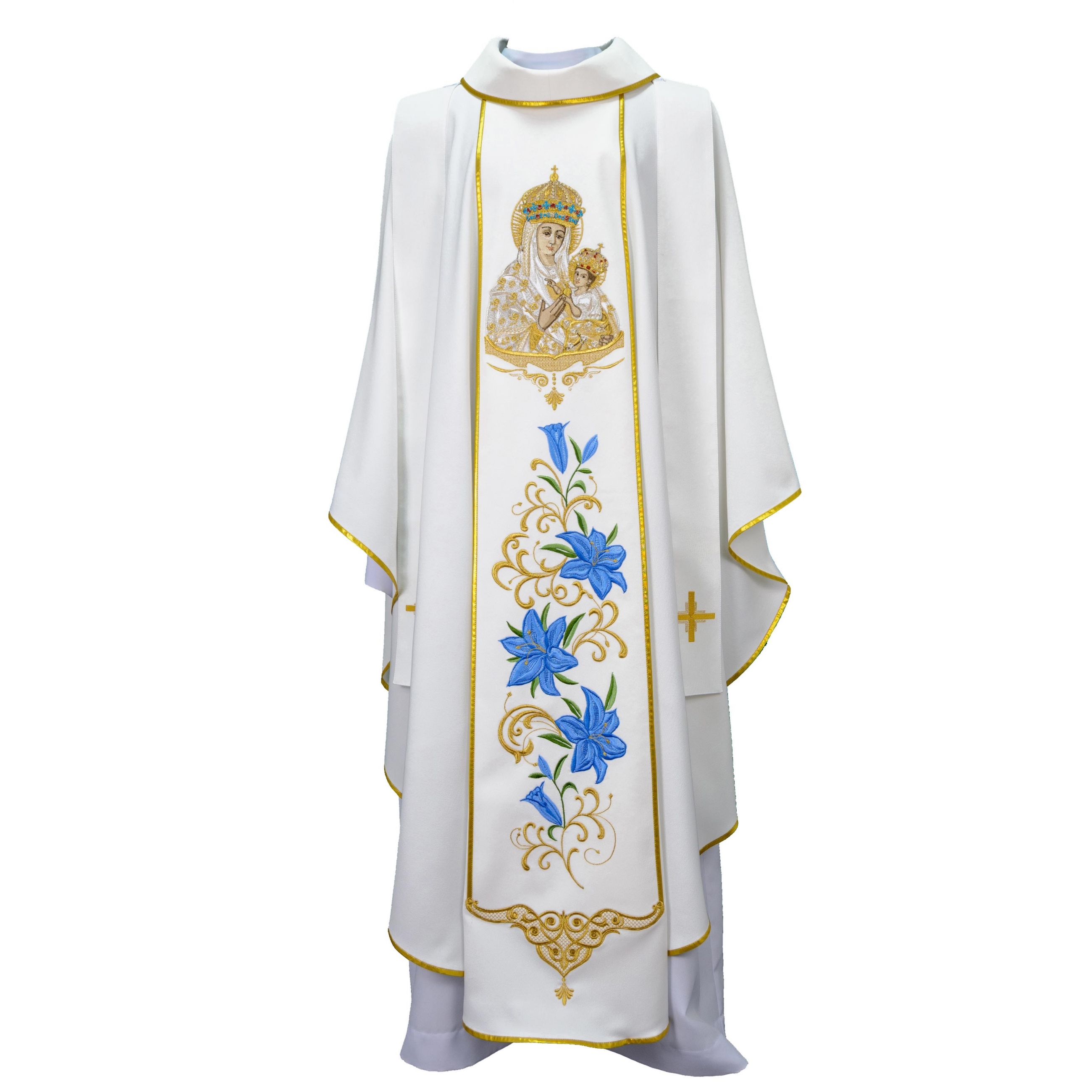 Ўпрыгожаны вышыўкай, якая выконваецца шаўковай або металічнай ніткай.