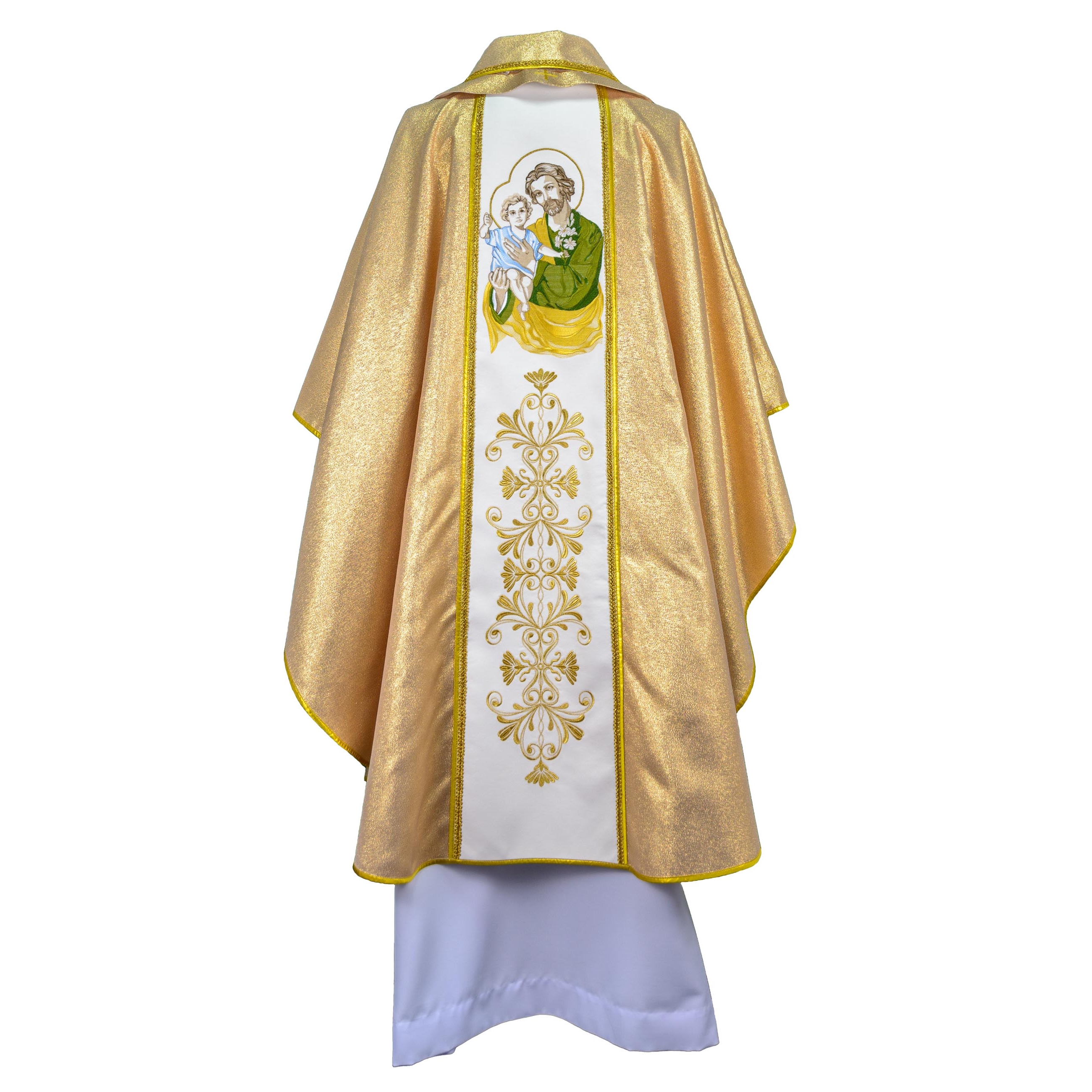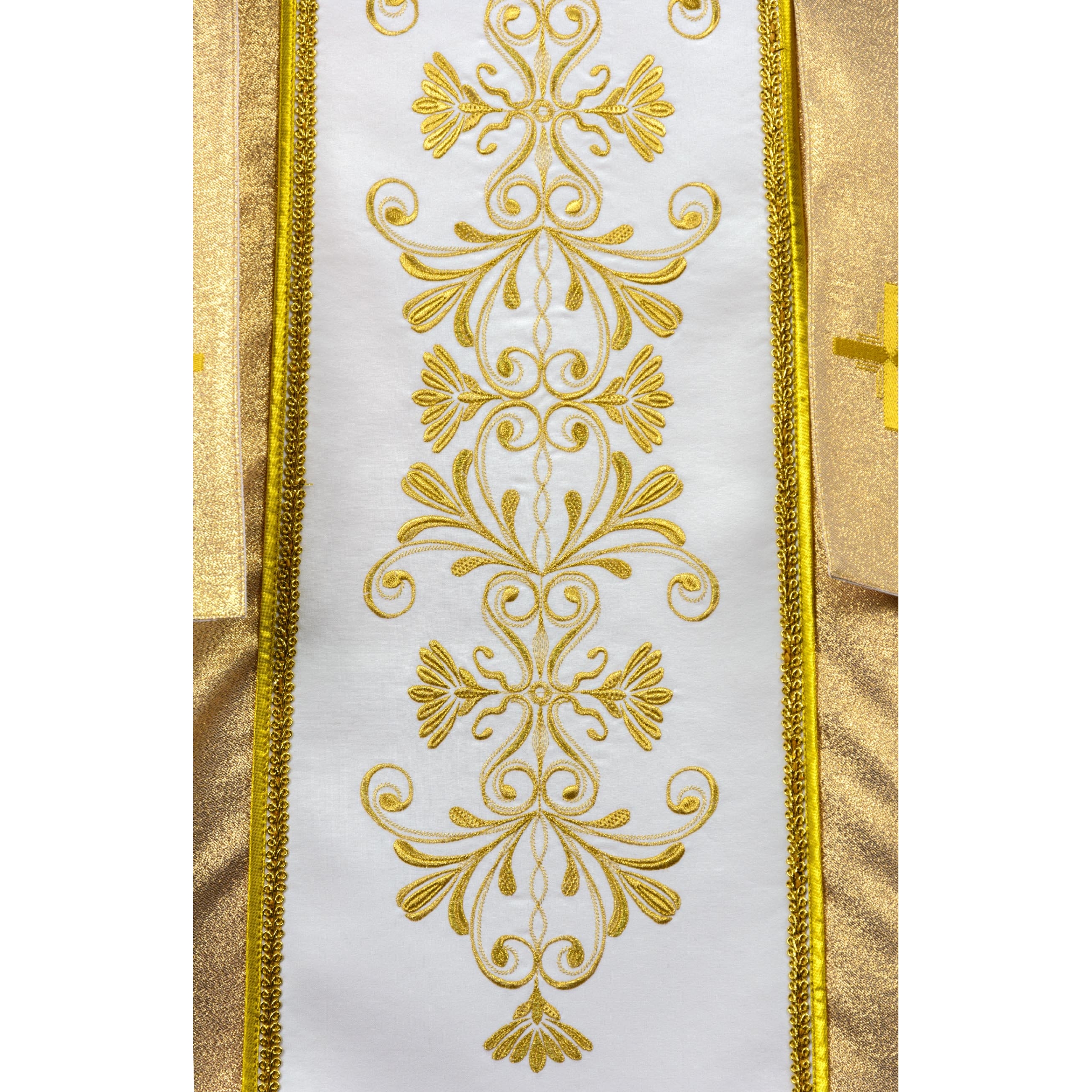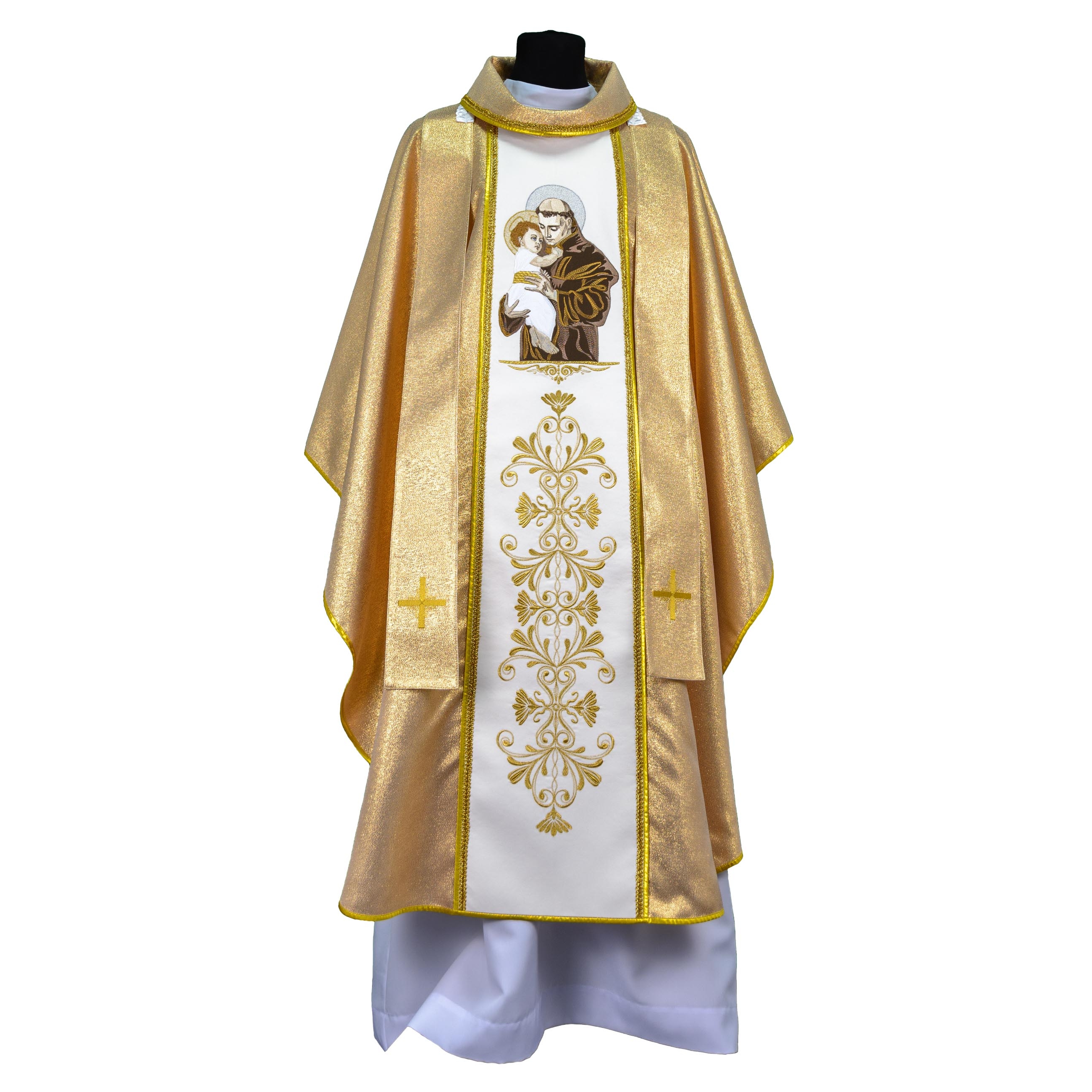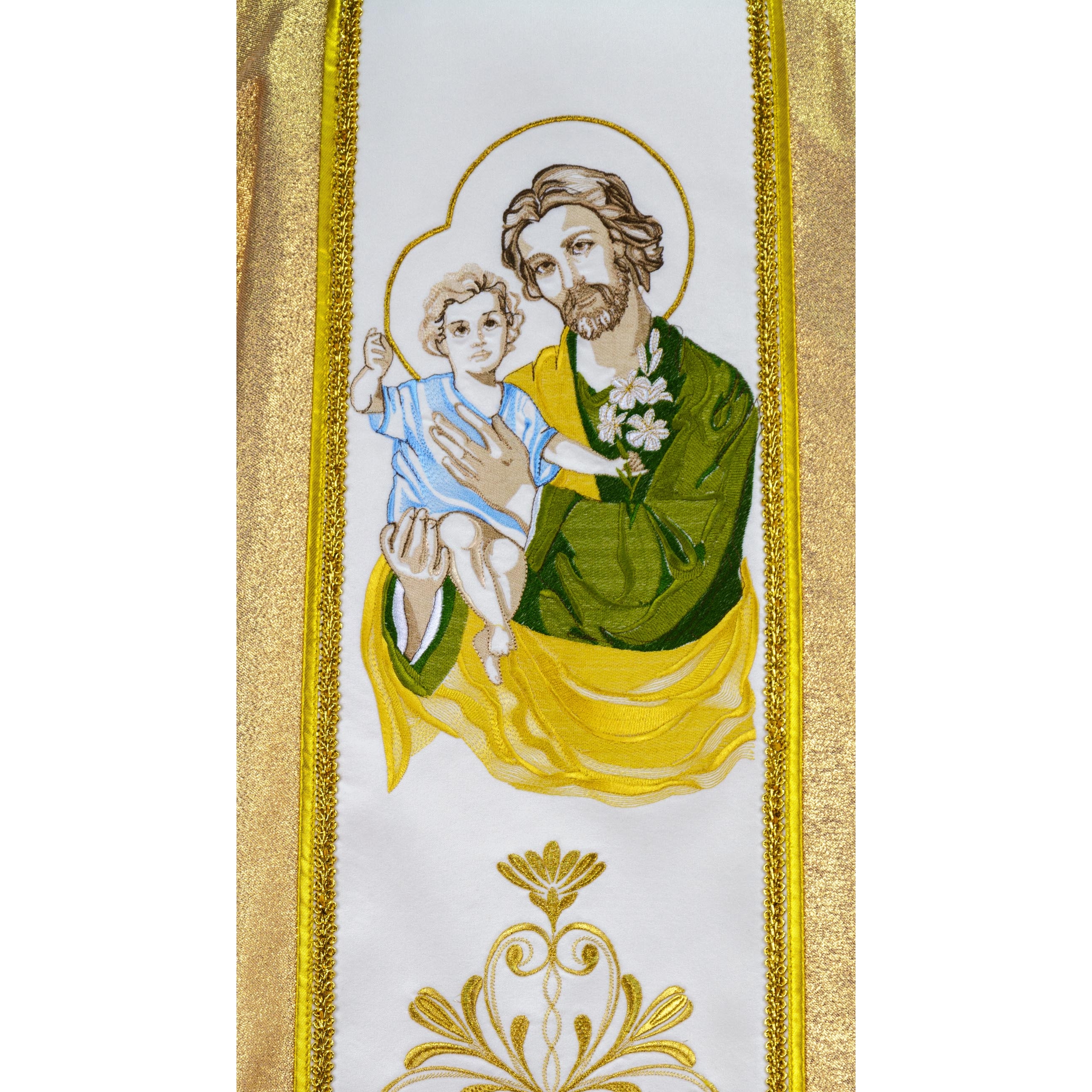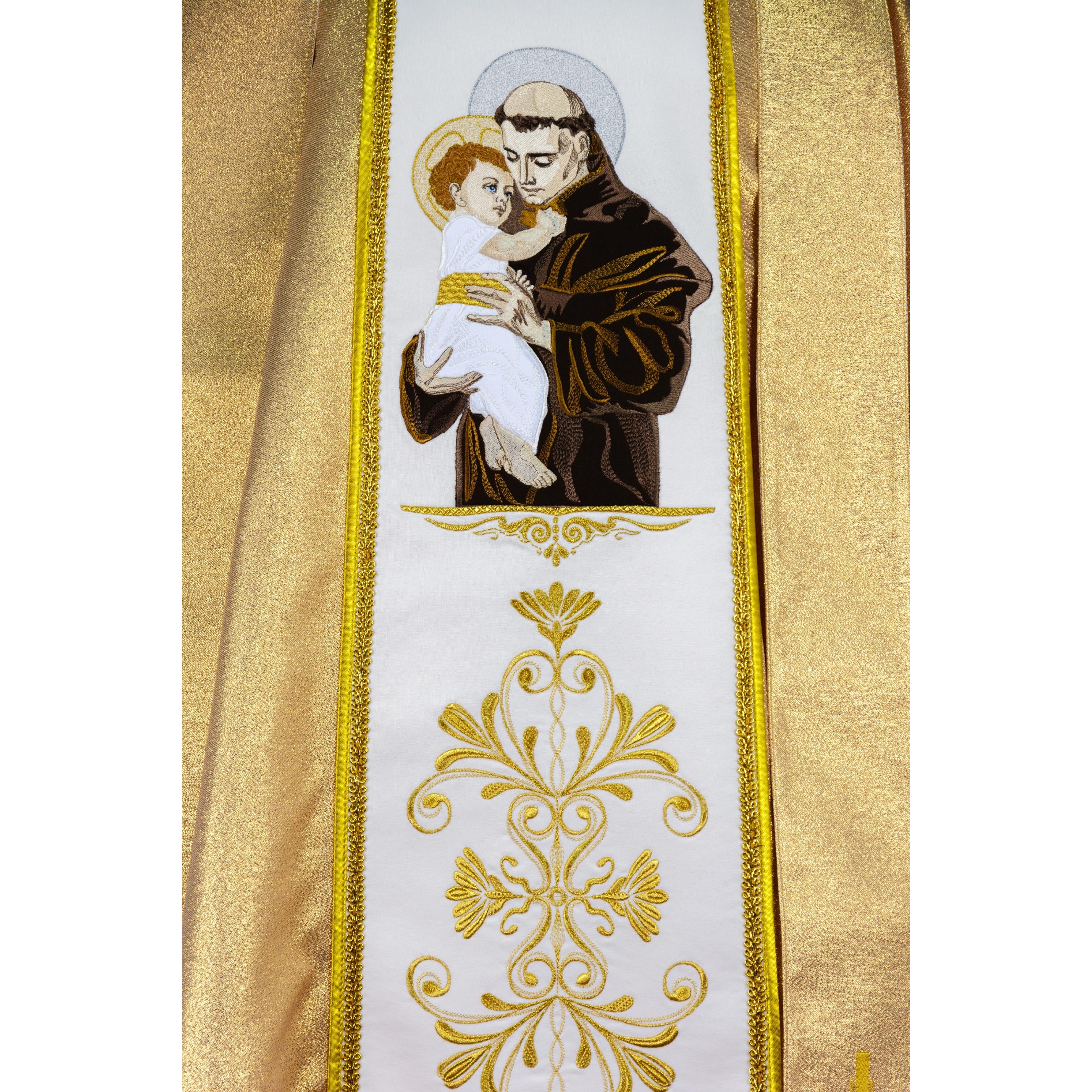 Арнат выраблены з залатой парчы, адстрочаны залатой тасьмой. Пояс з габардзіну аздоблены вышытымі шаўковай і металічнай ніткай абразамі св. Антонія (спераду) і св. Юзафа (па спінцы).