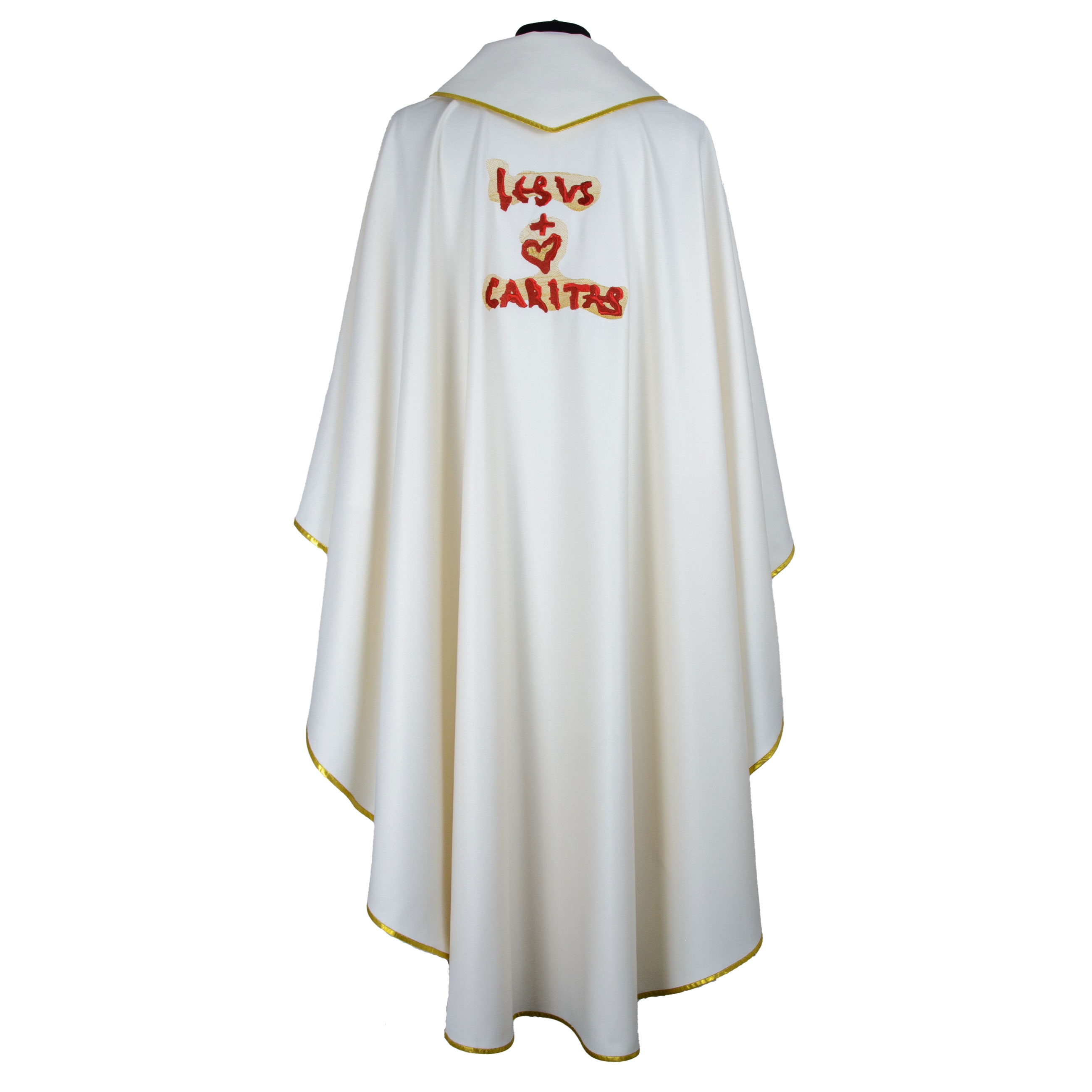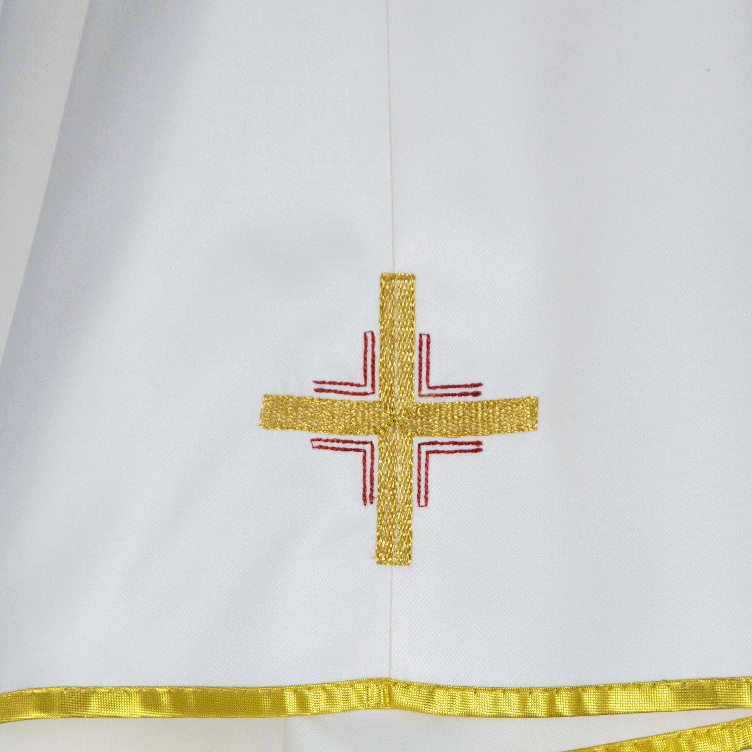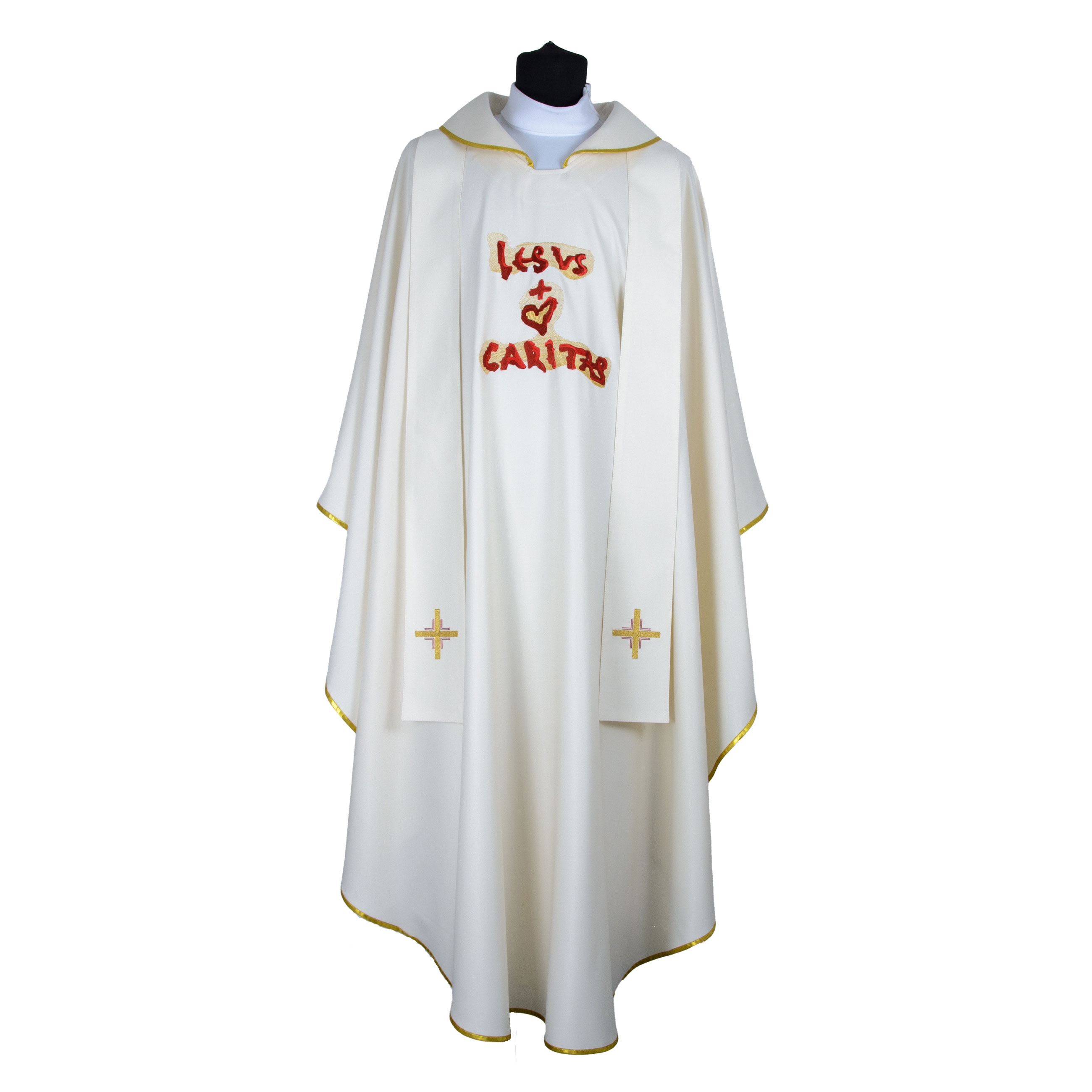 Арнат белы без пояса з надпісам. Каўнер тыпу "карэ".