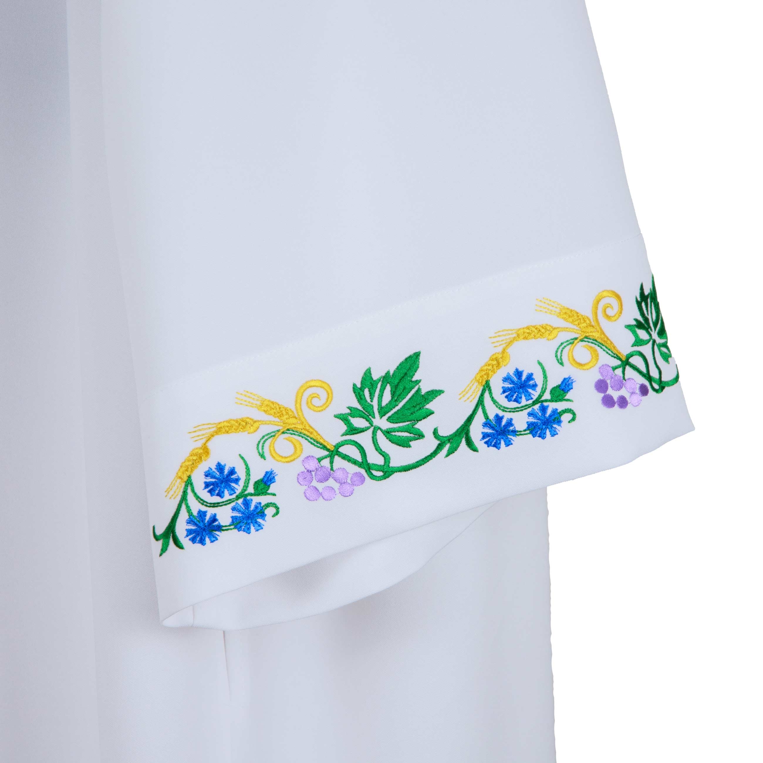 Альба святара. Каўнер стойка. Зашпілька "маланка" спераду. Мадэль прадугледжвае пояс.