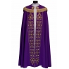 Ornat z haftowanym krzyżem tau i napisem Pax. Wzdłuż dolnej krawędzi ozdobiony złotą taśmą.
