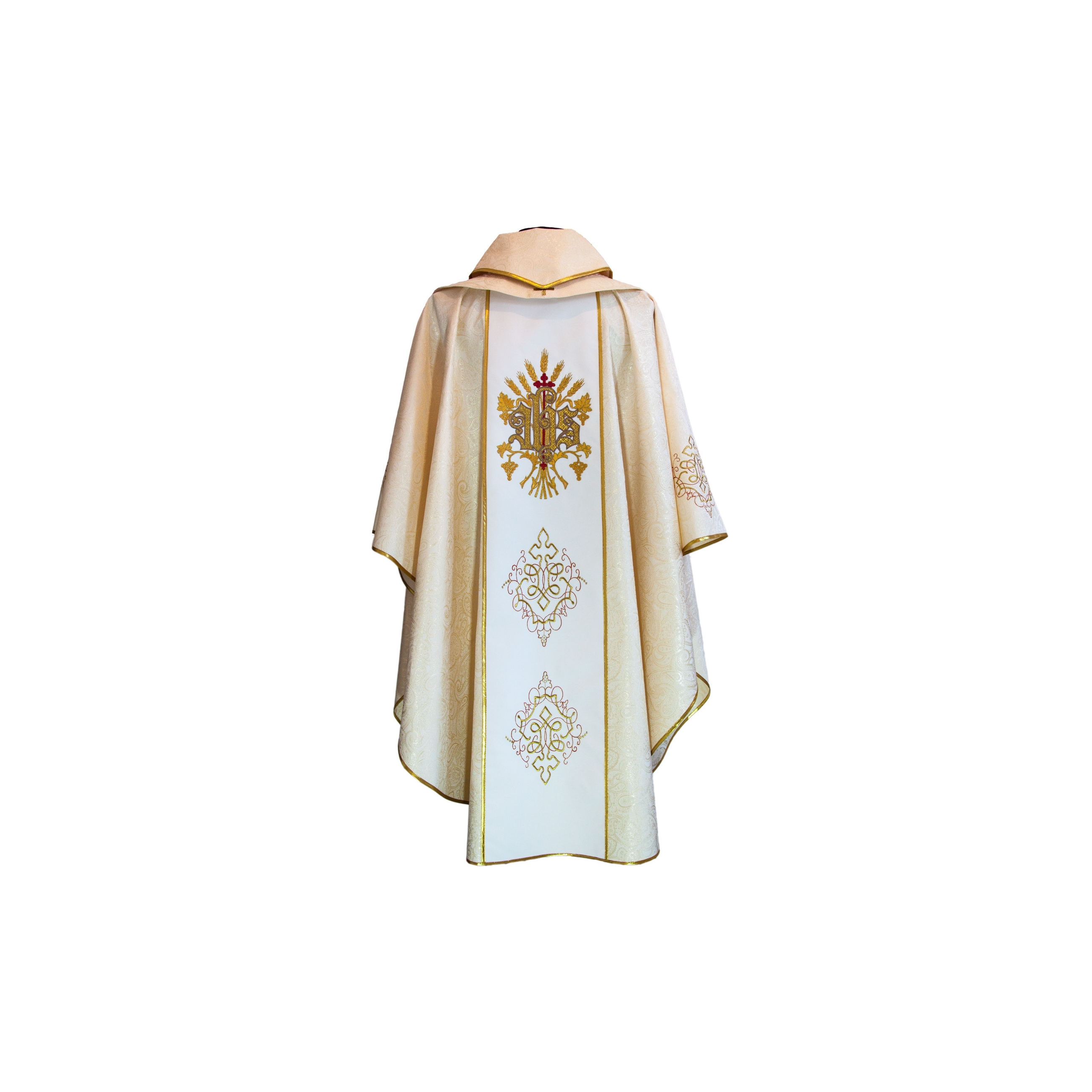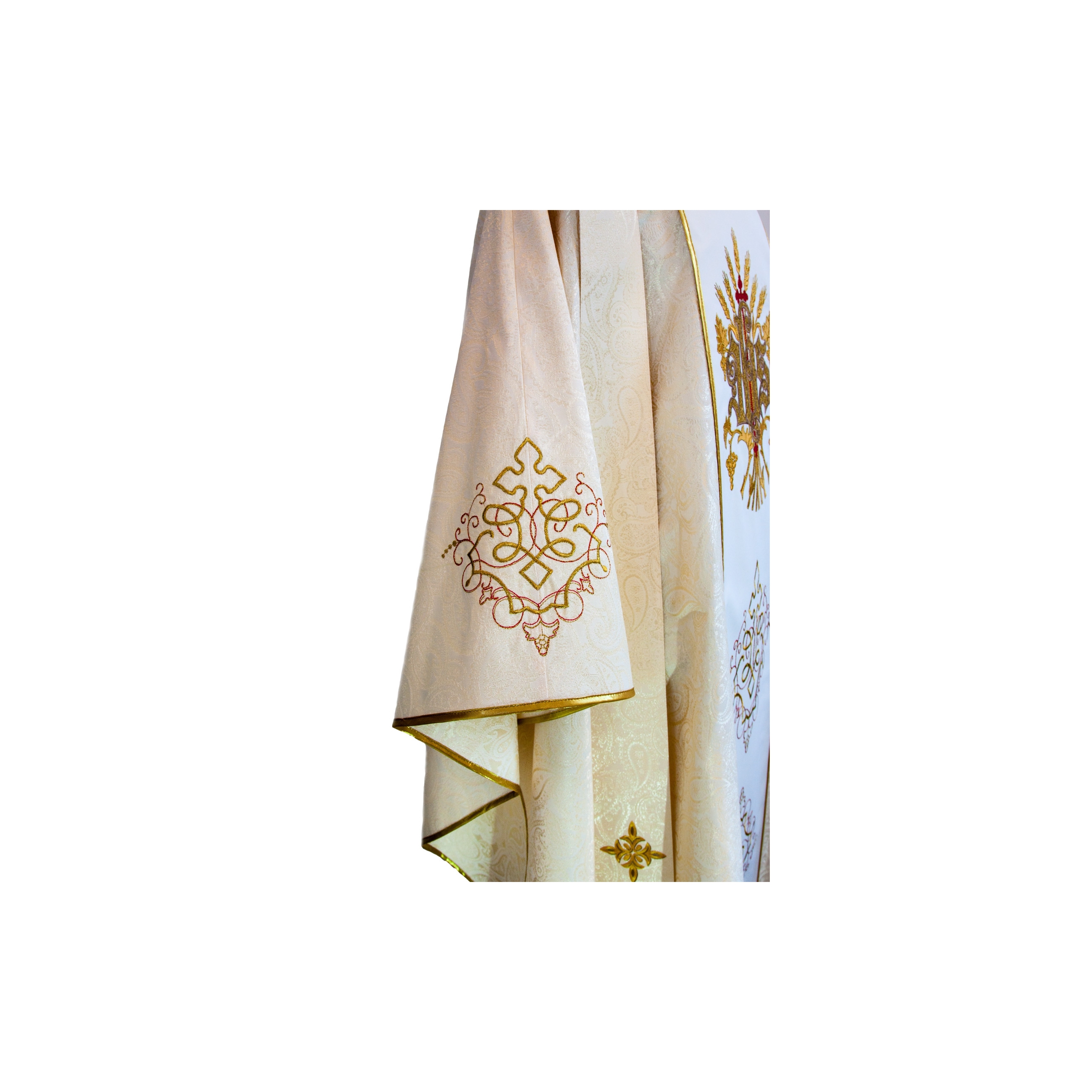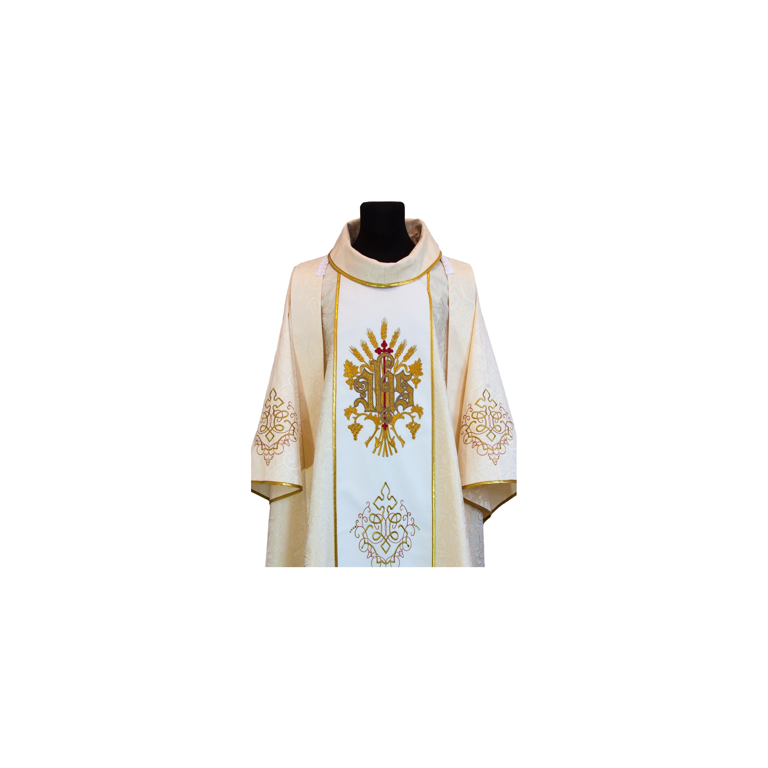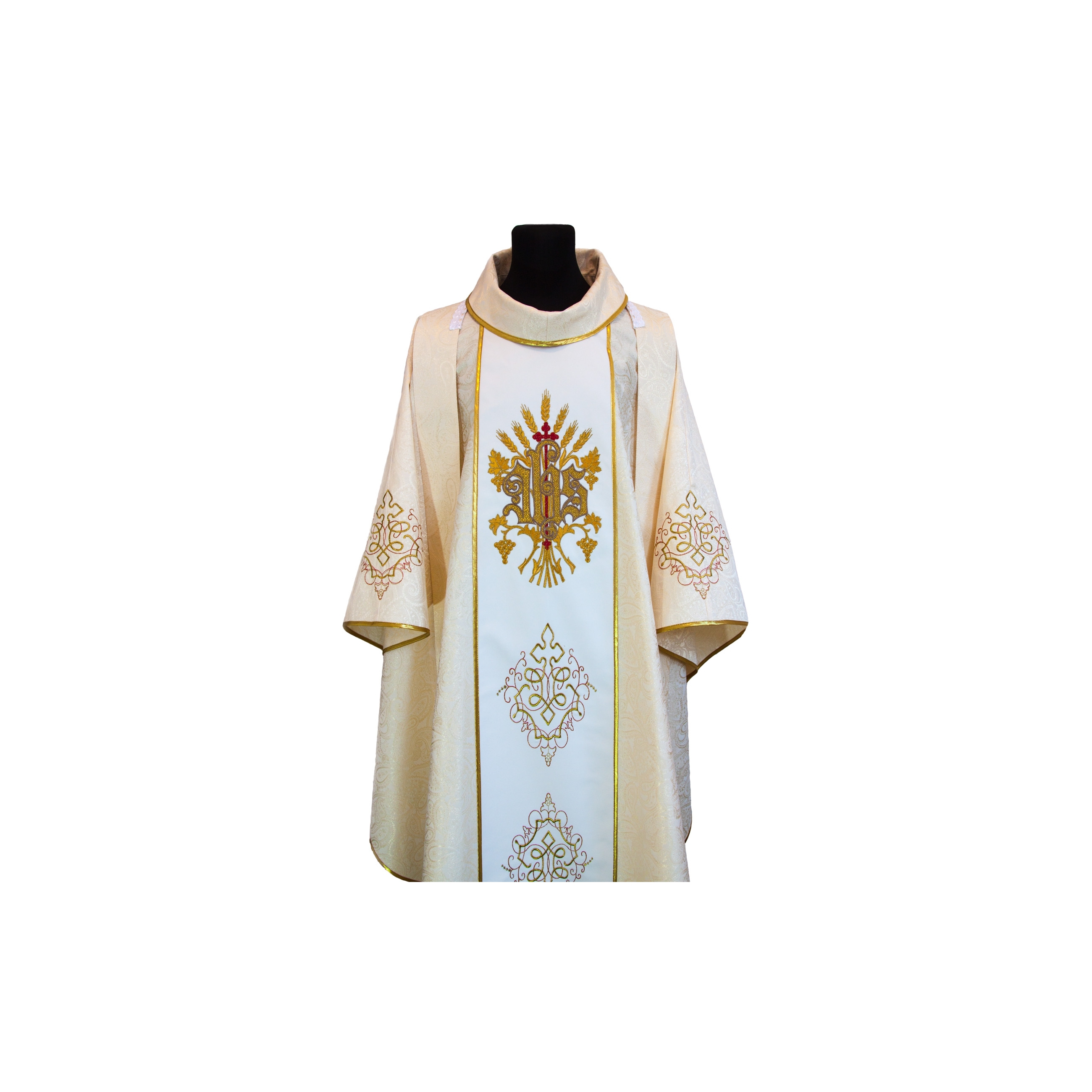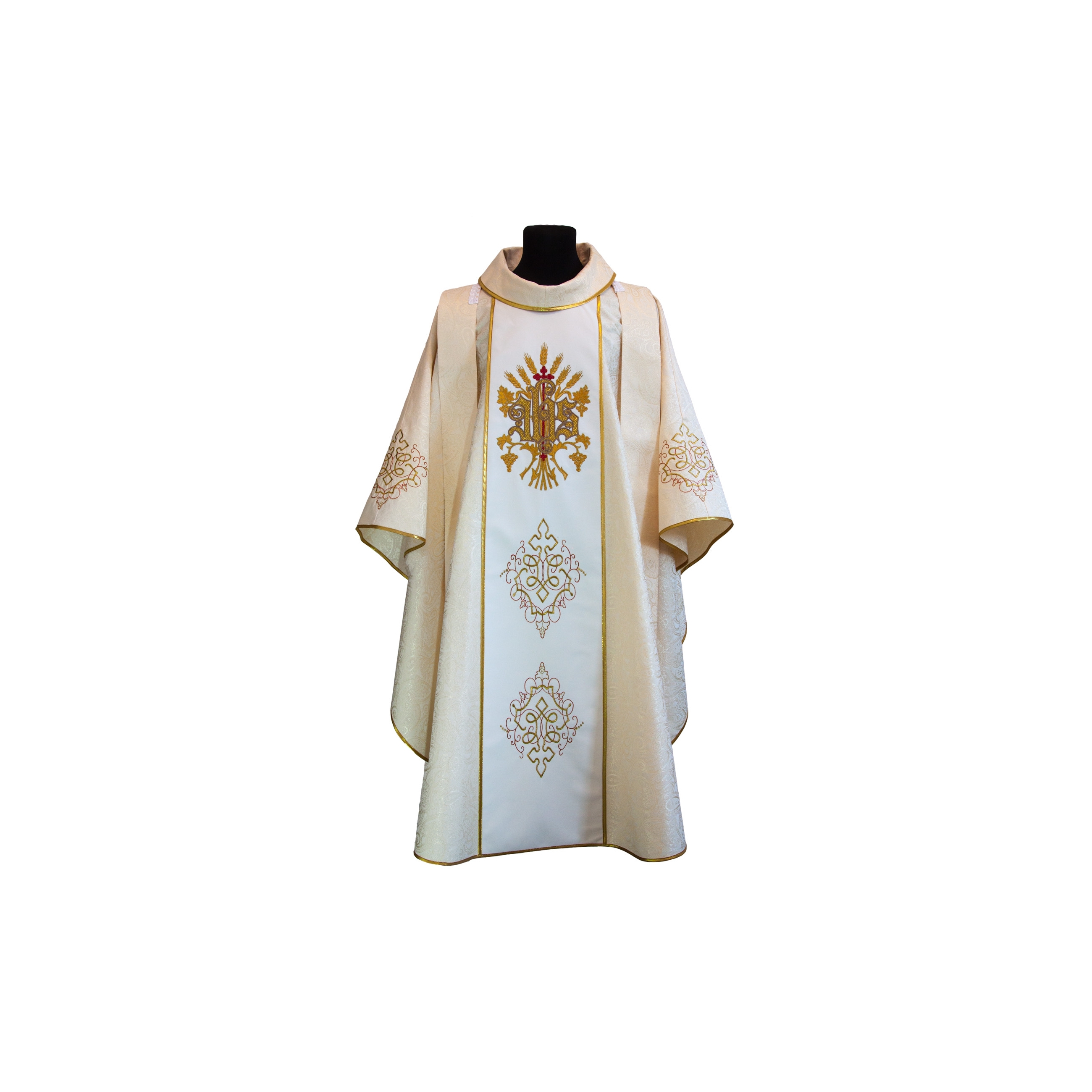 Ornat z pasem dekoracyjnym, w całości obszyty złotą lamówką.