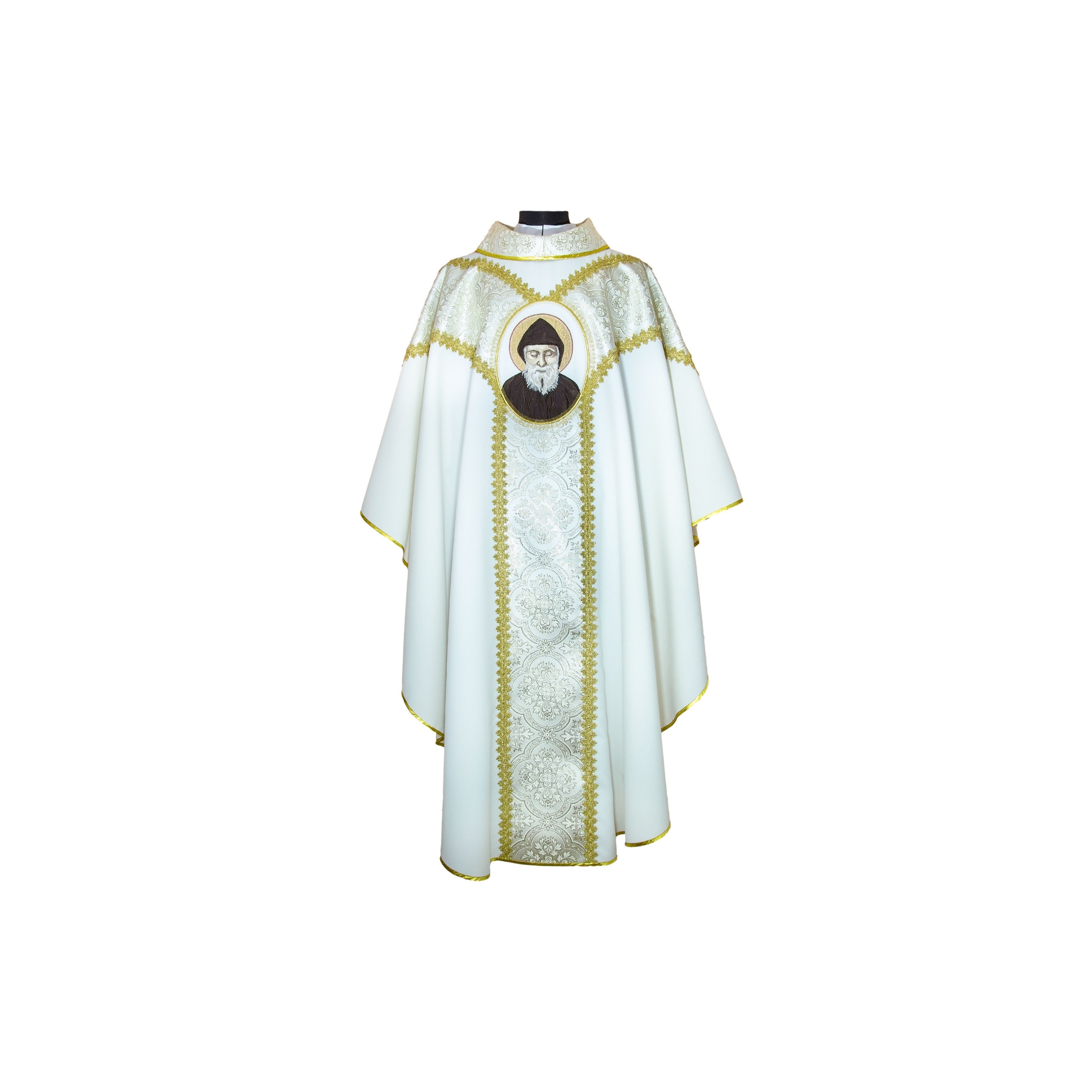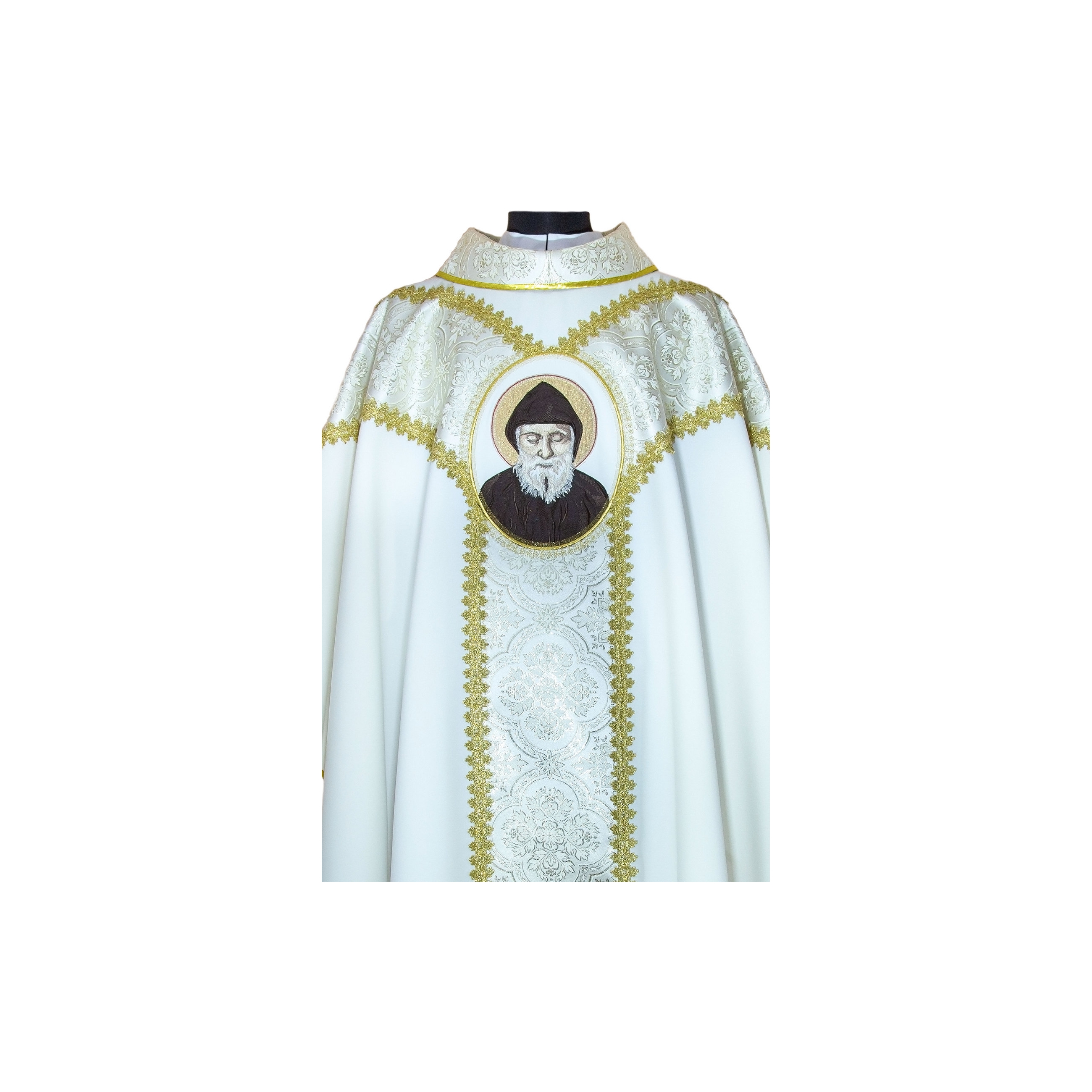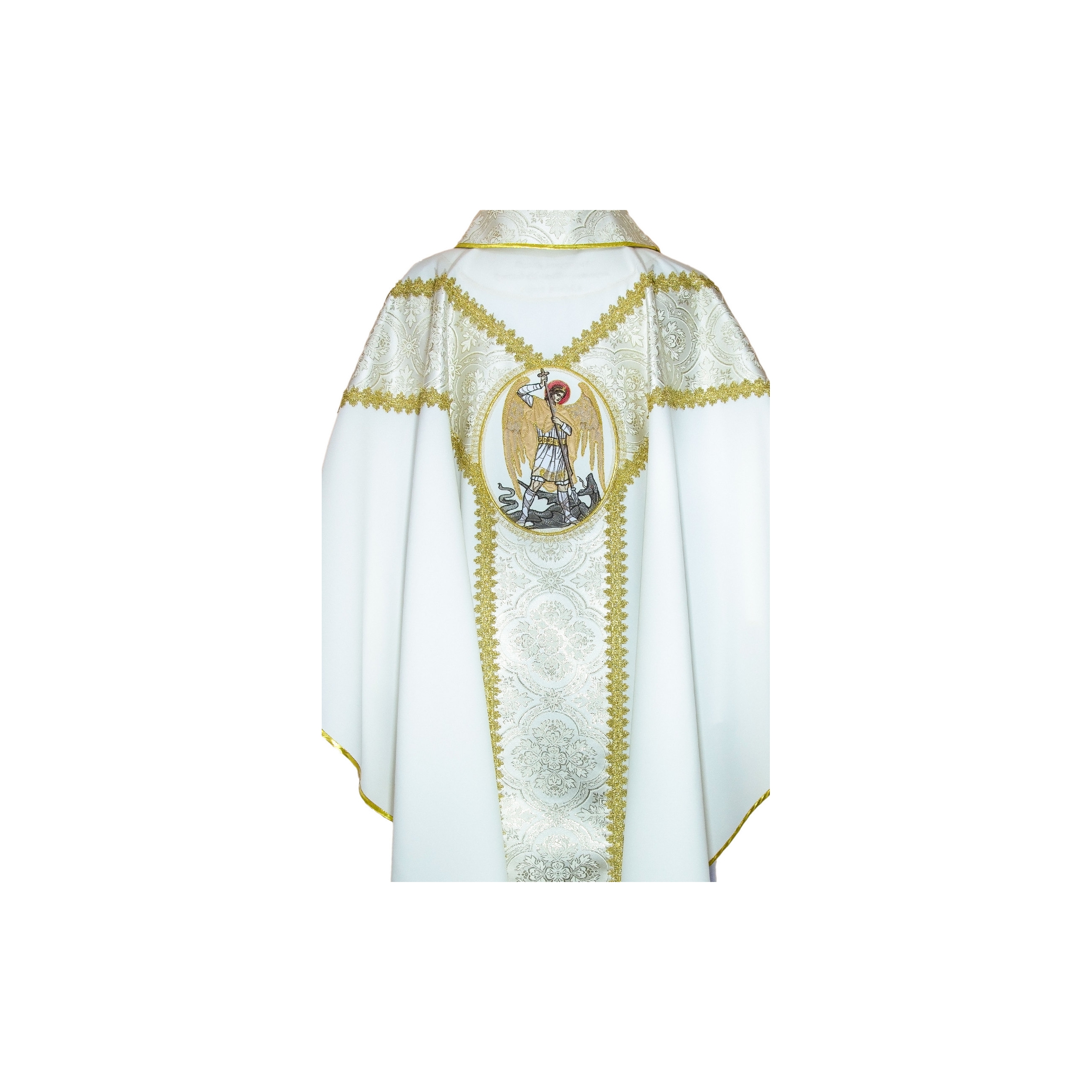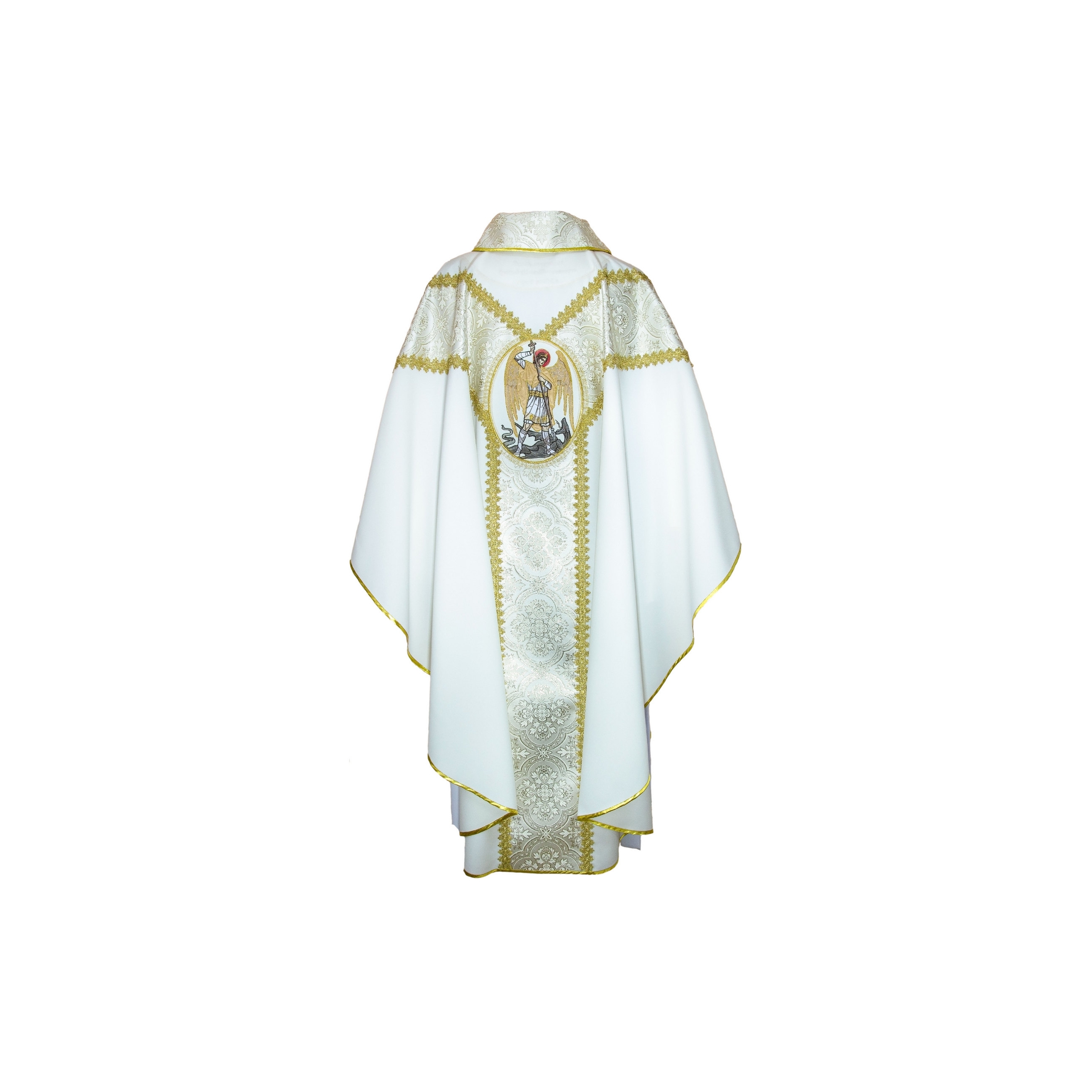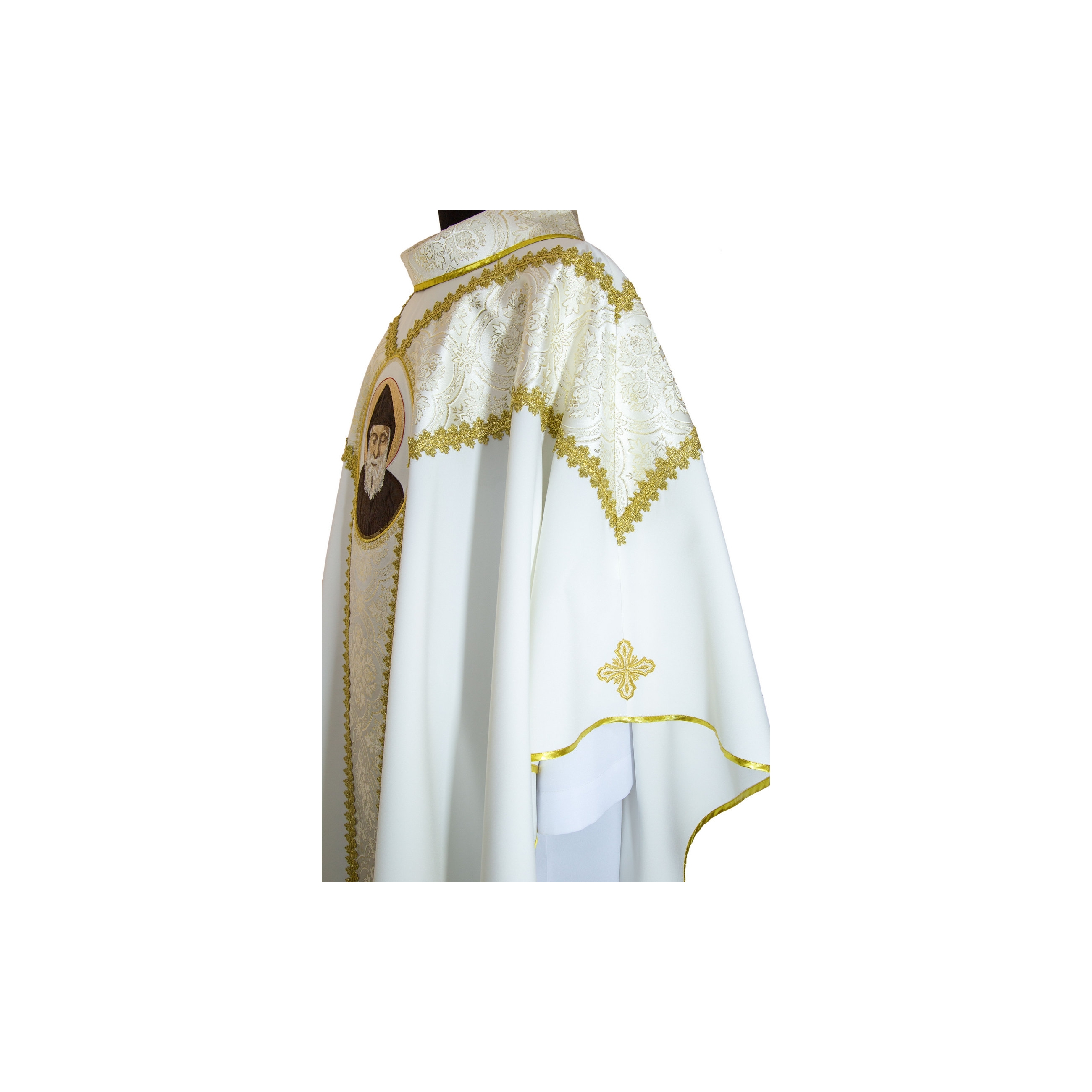 Ornat wykonany z lekkiego, przyjemnego w dotyku i słabo gniotliwego materiału. Ozdobiony haftem ze stosowaniem nici jedwabnych lub metalicznych.