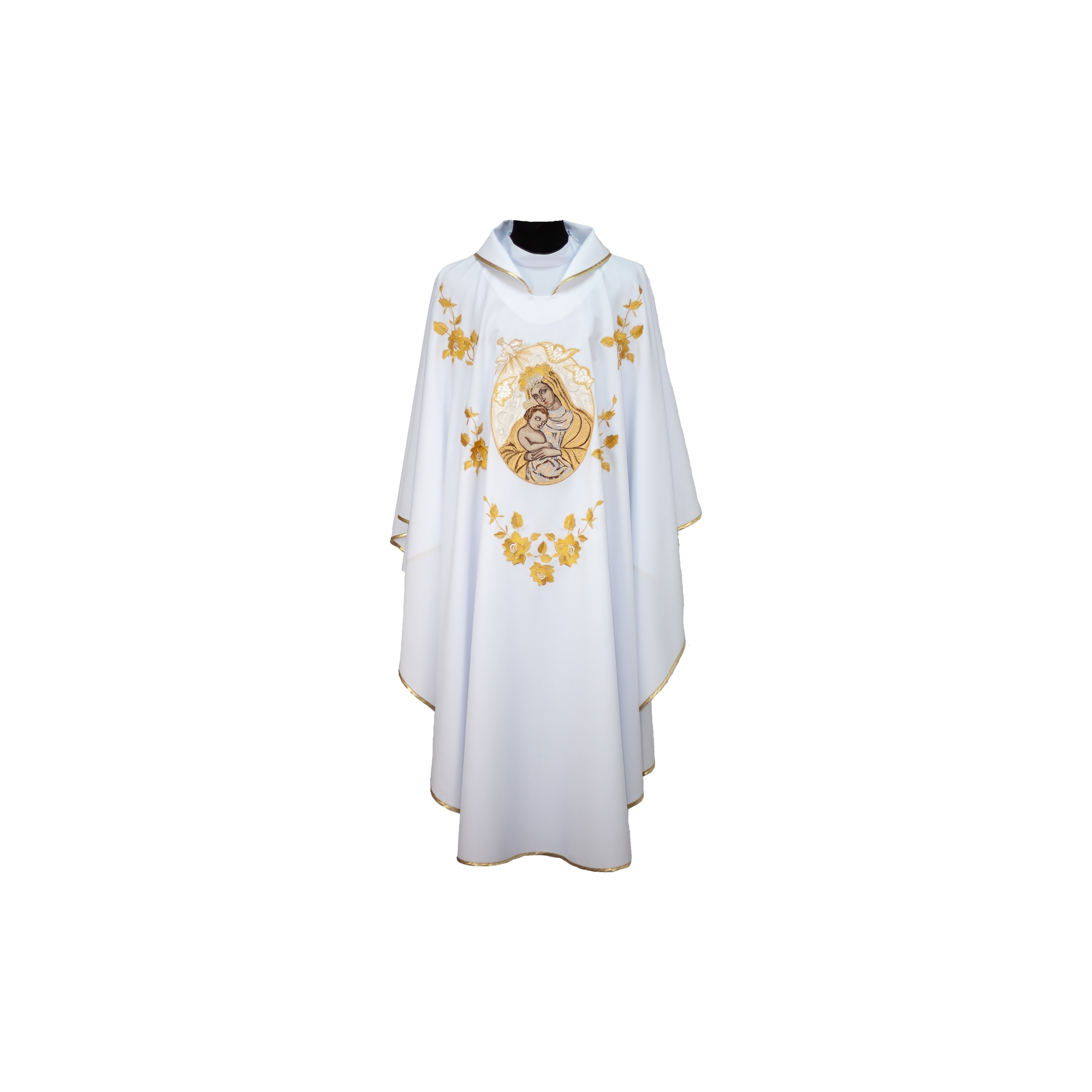 Орнат без пояса, воротник типа "Хомут". Отстрочен золотой тесьмой.