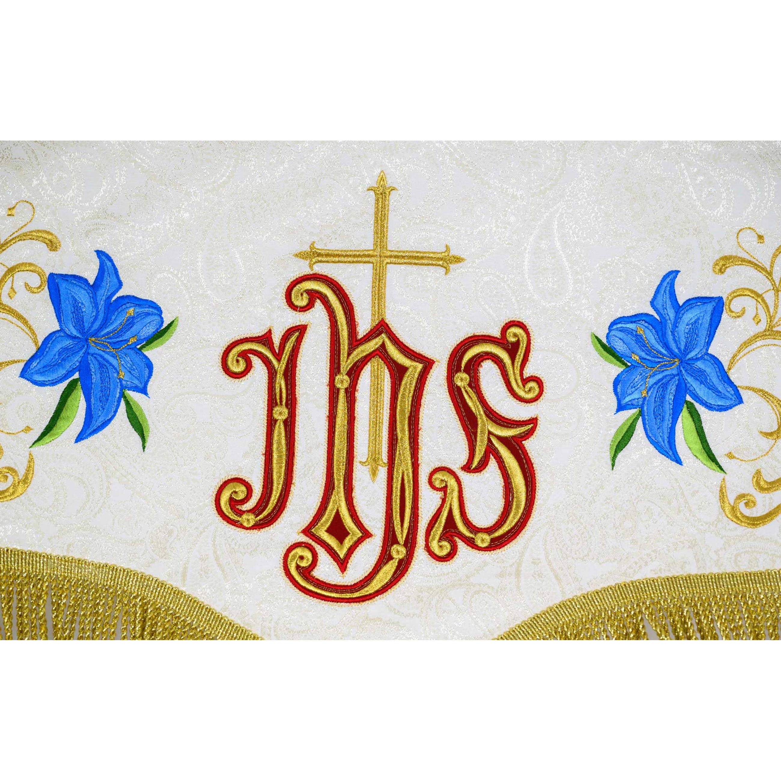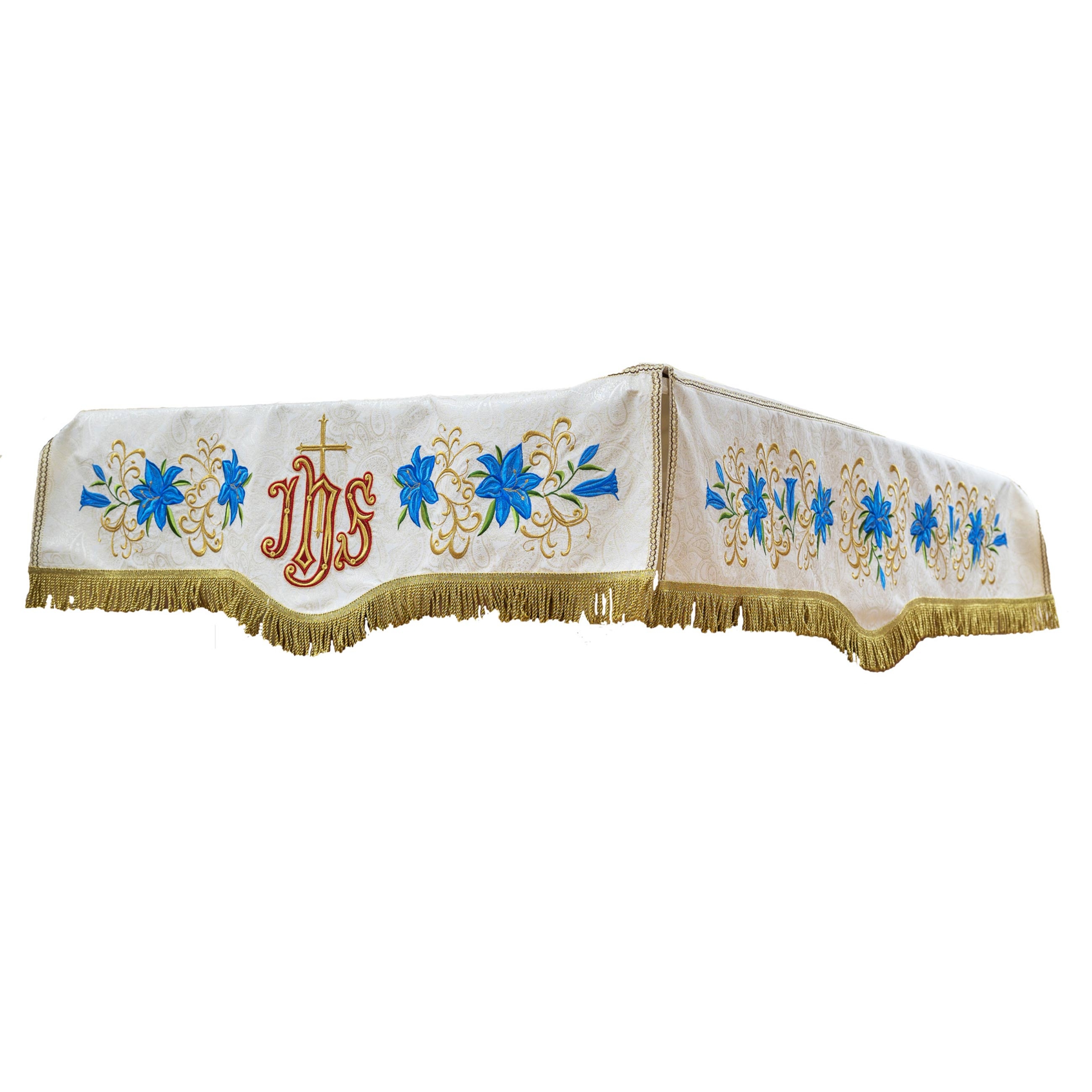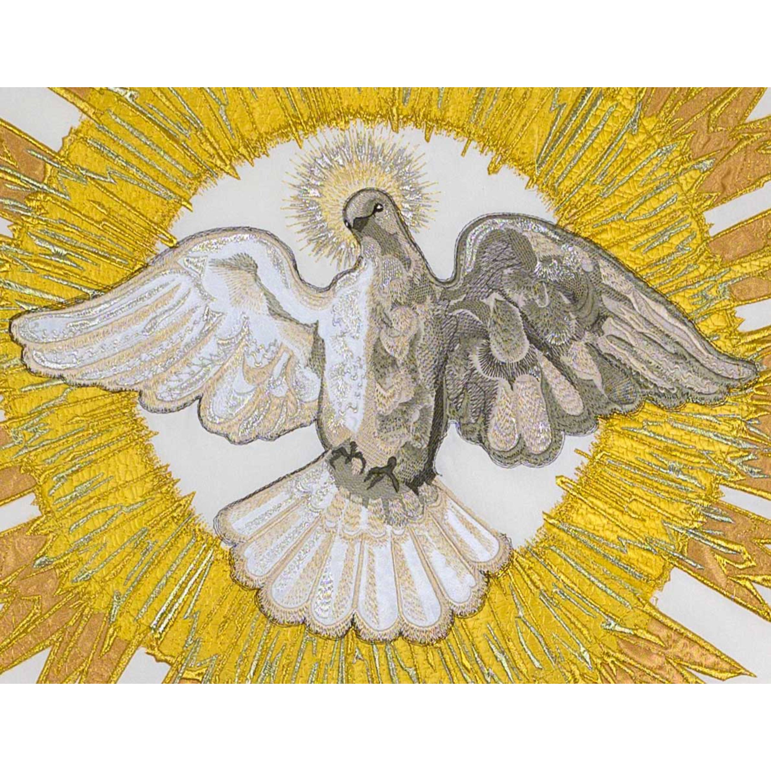Балдахин для процессий с изображением Духа Святого в виде голубя на внутренней стороне изделия. Вышивка выполняется шелковой или металлической нитью.